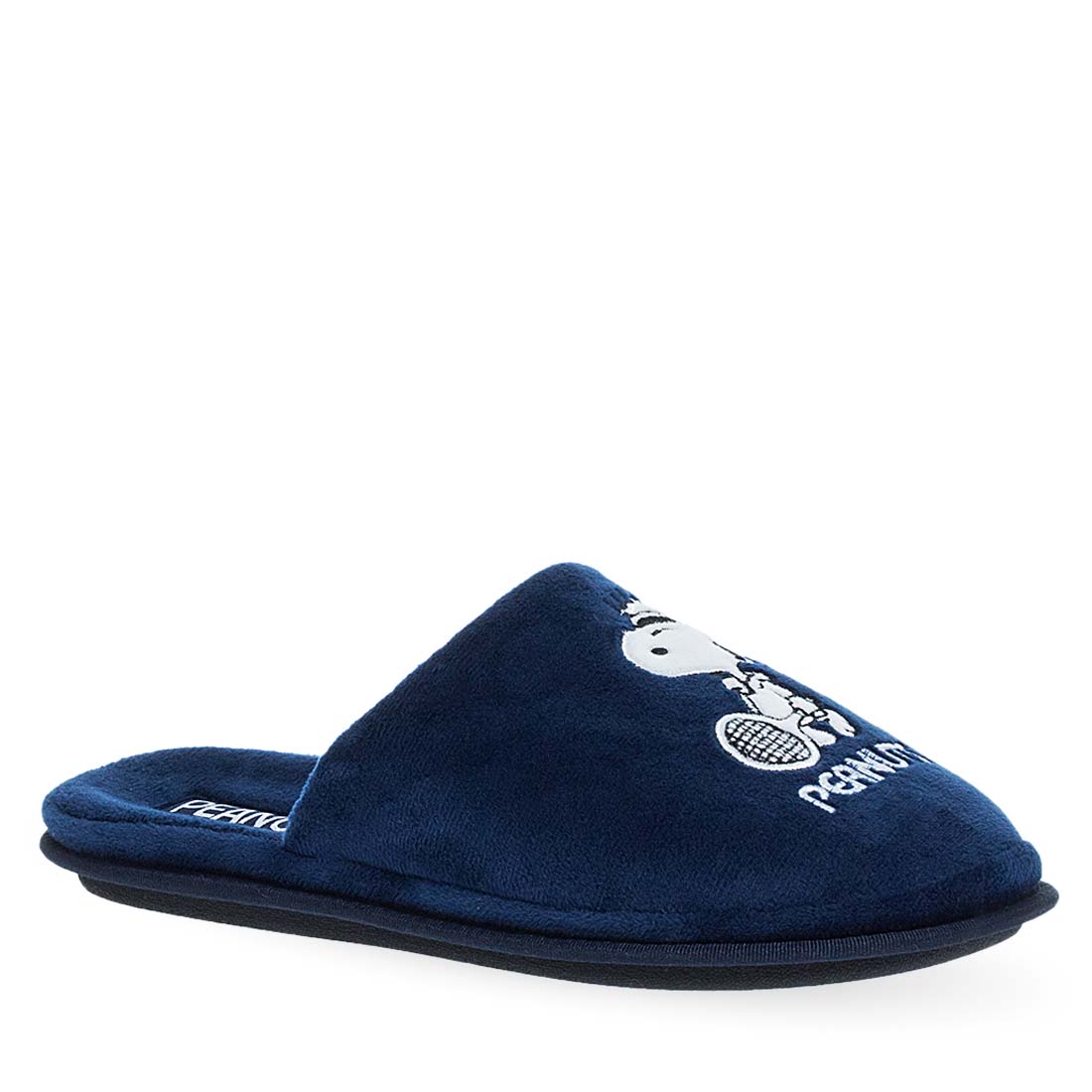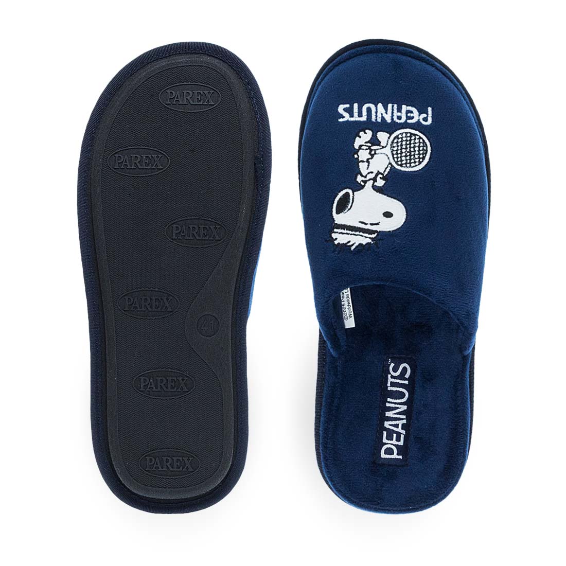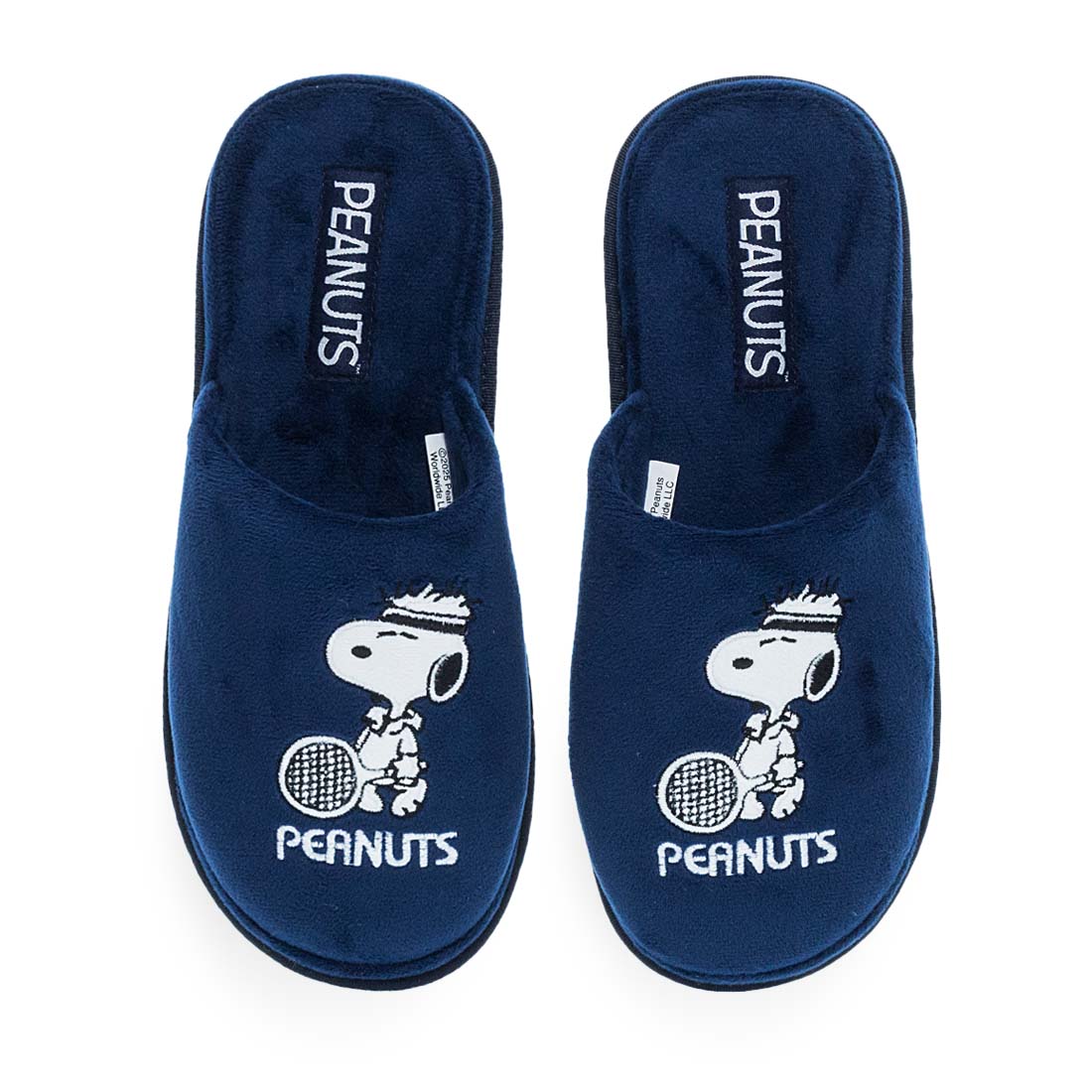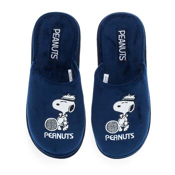 Ανδρικές παντόφλες σπιτιού Peanuts. Γκρι και μπλε ανδρικές παντόφλες Snoopy Peanuts με κεντημένο σχέδιο και μαλακή επένδυση – ιδανικές για άνεση στο σπίτι.