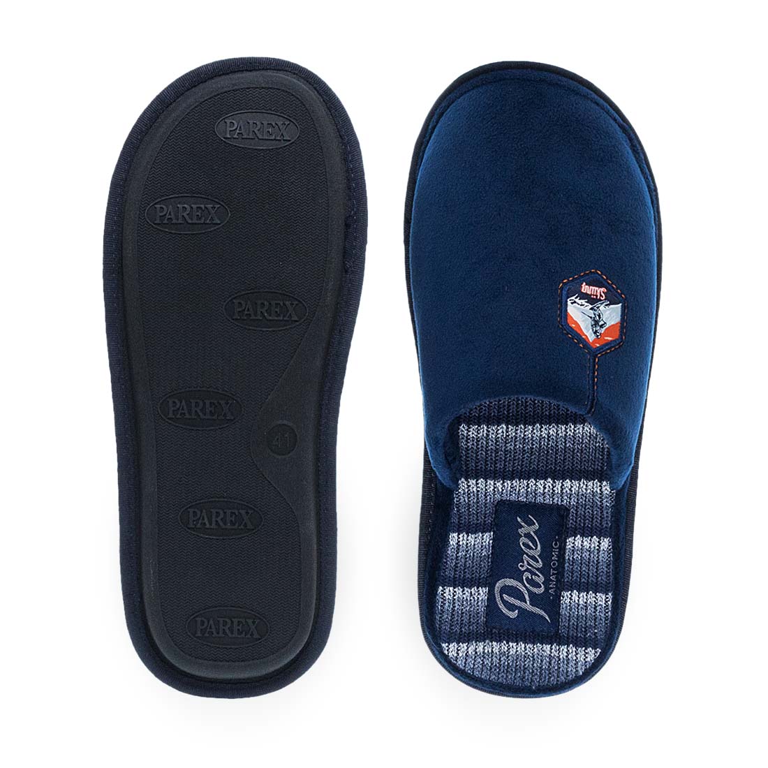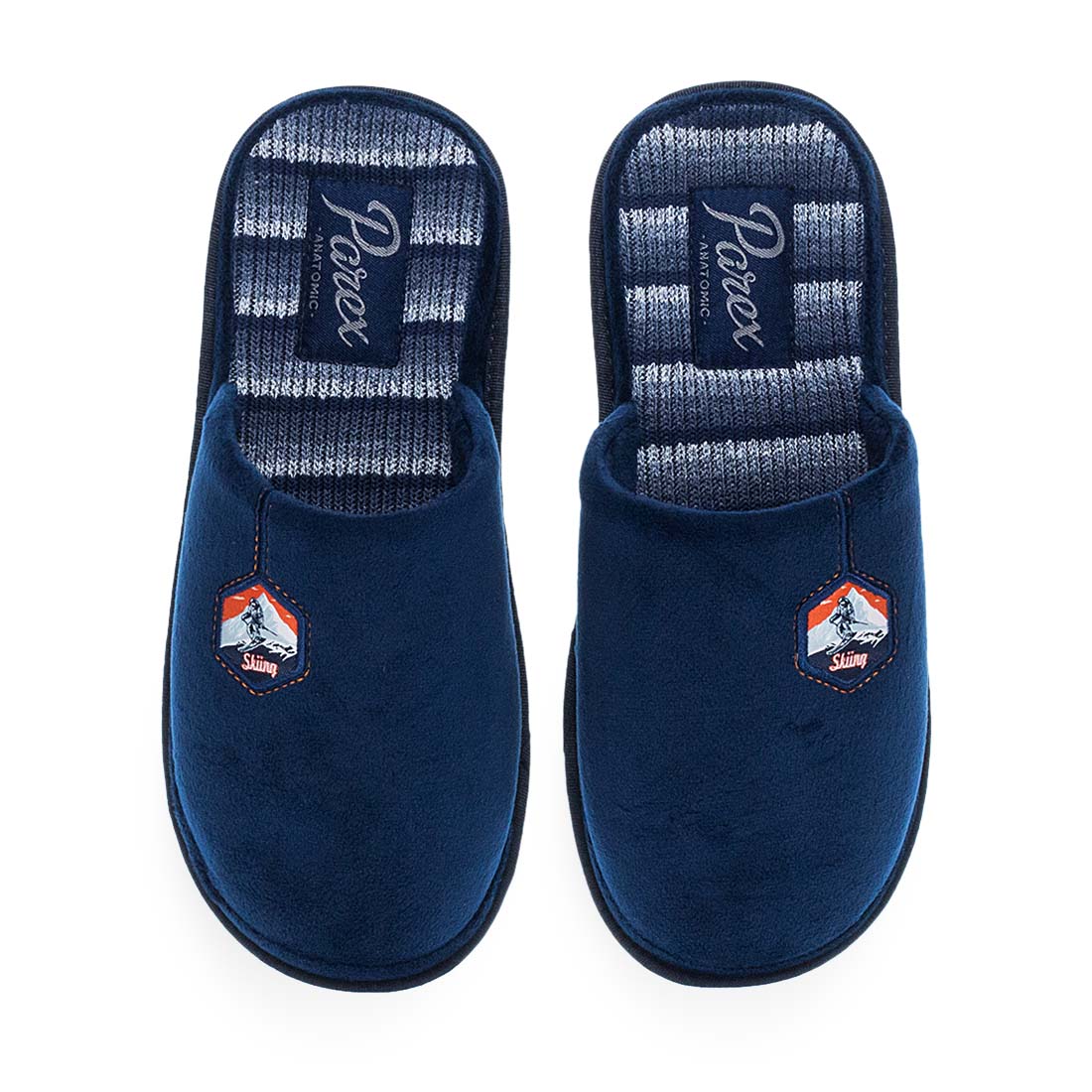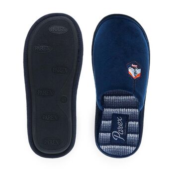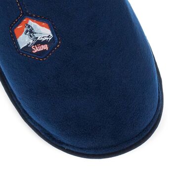 Ανδρικές παντόφλες σπιτιού Parex. Ανδρικές παντόφλες Parex σε γκρι και μπλε απόχρωση με διακριτικό patch «Skiing». Ανατομικός σχεδιασμός και εσωτερικός πάτος με επένδυση για άνεση όλη μέρα. Ιδανικές για τον χειμώνα.