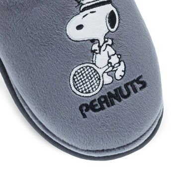 Ανδρικές παντόφλες σπιτιού Peanuts. Γκρι και μπλε ανδρικές παντόφλες Snoopy Peanuts με κεντημένο σχέδιο και μαλακή επένδυση – ιδανικές για άνεση στο σπίτι.