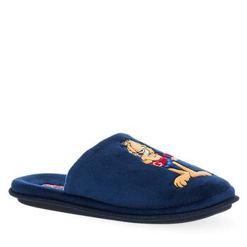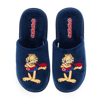 Ανδρικές παντόφλες σπιτιού Garfield. Ανδρικές παντόφλες Garfield σε γκρι και μπλε χρώμα με κεντημένο σχέδιο του χαρακτήρα, προσφέροντας χιούμορ και στυλ στο σπίτι.