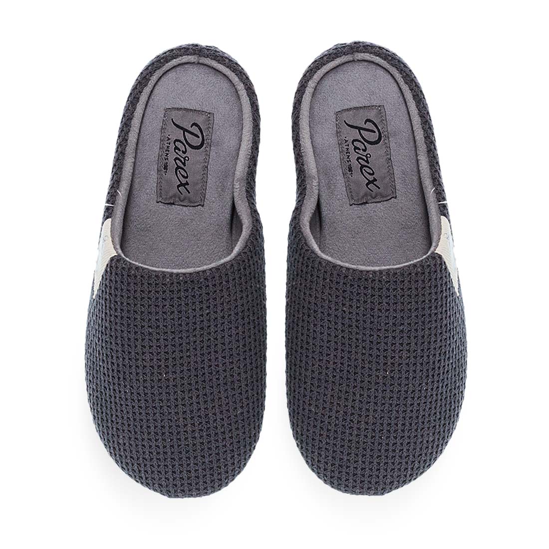 Ανδρικές παντόφλες σπιτιού Parex. Ανδρικές παντόφλες Parex σε γκρι και μπλε απόχρωση με ανάγλυφη υφή. Ζεστές, ανθεκτικές και ιδανικές για άνεση στο σπίτι.