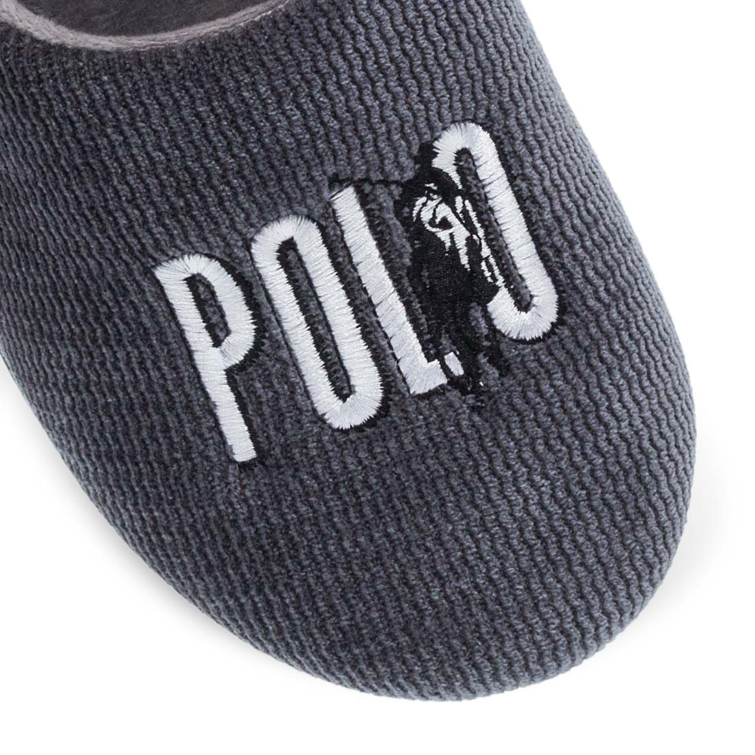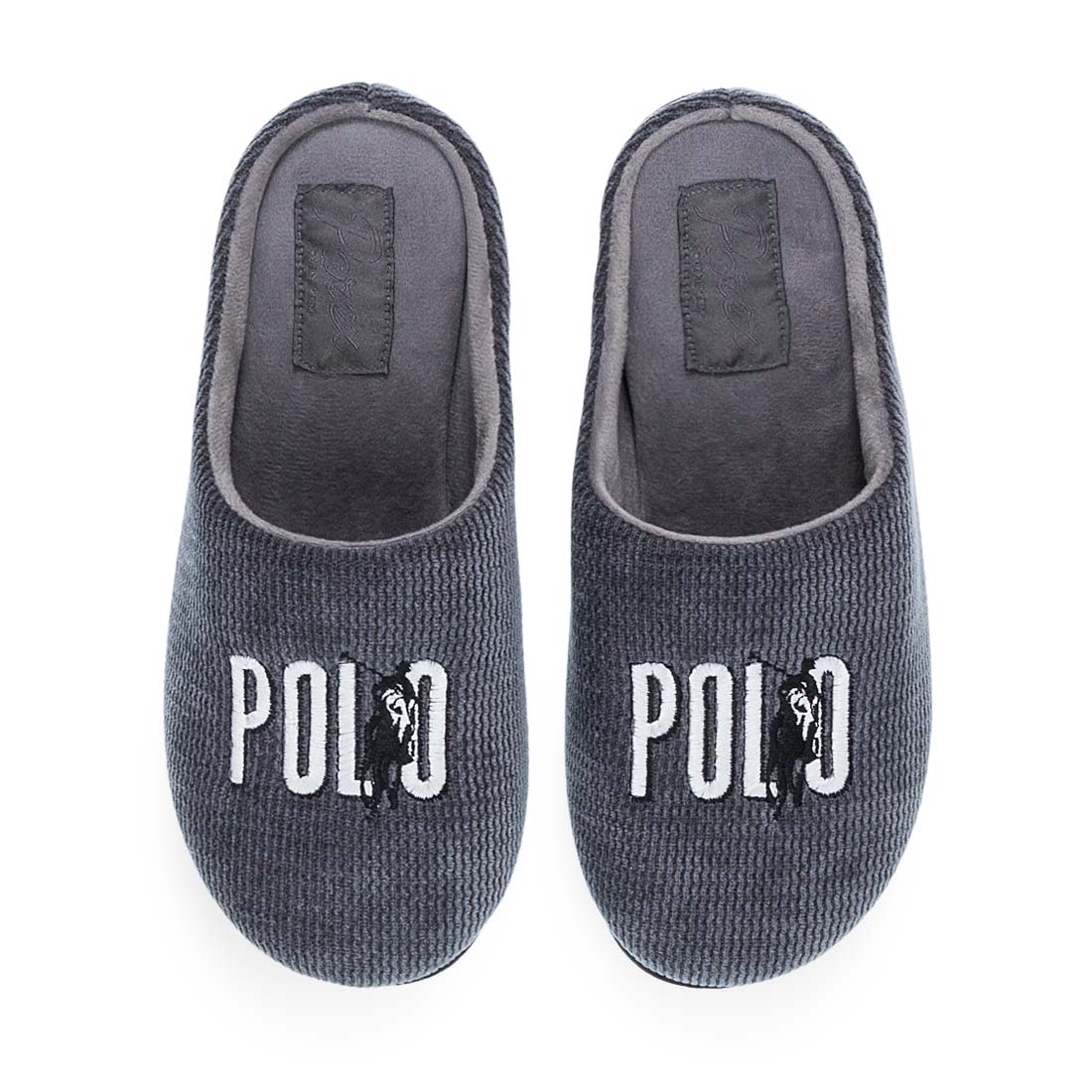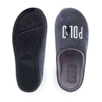 Ανδρικές παντόφλες σπιτιού Parex. Ανδρικές παντόφλες Parex σε γκρι σκούρο και μπλε με κέντημα POLO. Κομψές, ζεστές και ανθεκτικές.