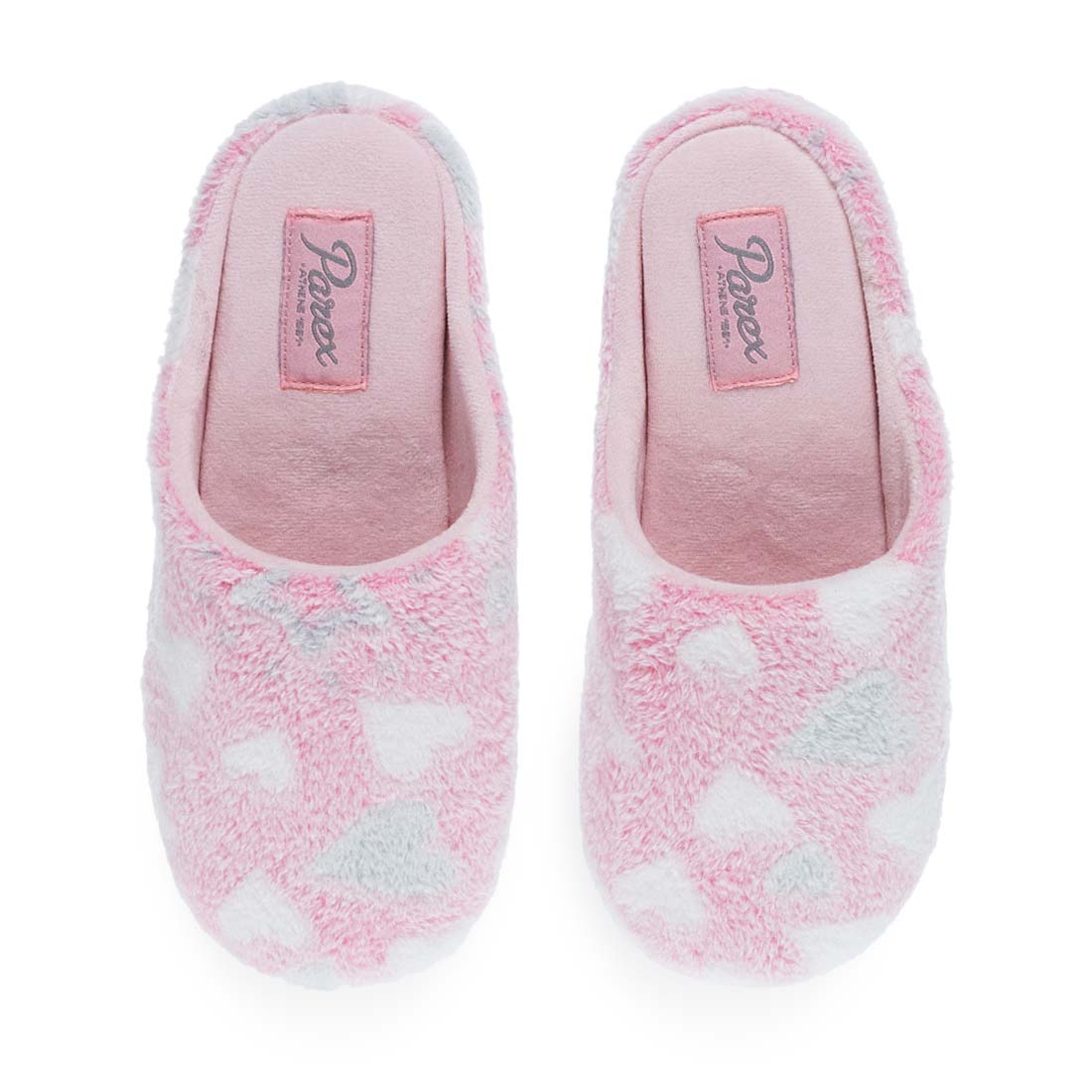 Γυναικείες παντόφλες σπιτιού Parex. Γυναικείες παντόφλες Parex σε γκρι και ροζ χρώμα με μοτίβο καρδιές. Εσωτερική επένδυση για ζεστασιά και στυλ.