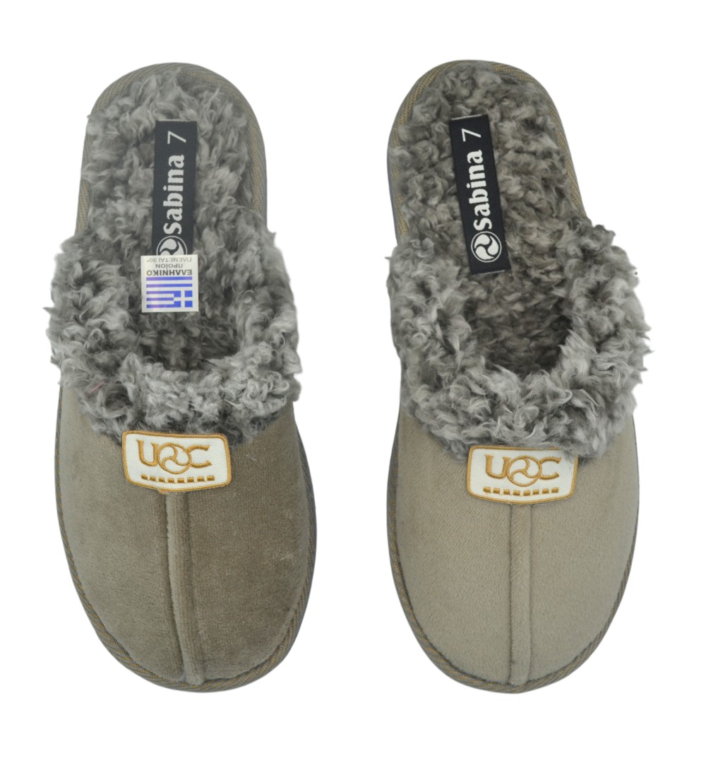 Γυναικεία υφασμάτινη παντόφλα τύπου UGG της sabina . Διαθέτει μαλακό και αναπαυτικό πάτο ,επένδυση με γούνα και αλκαντάρα εξωτερικά προσφέρει άνετο και μαλακό πάτημα .Η σόλα είναι από τσέλ κρέπ. Ελληνικής κατασκευής. Πλένετε στο πλυντήριο στους 30 βαθμούς. Έχουν στενή εφαρμογή, προτείνουμε ένα νούμερο μεγαλύτερο.