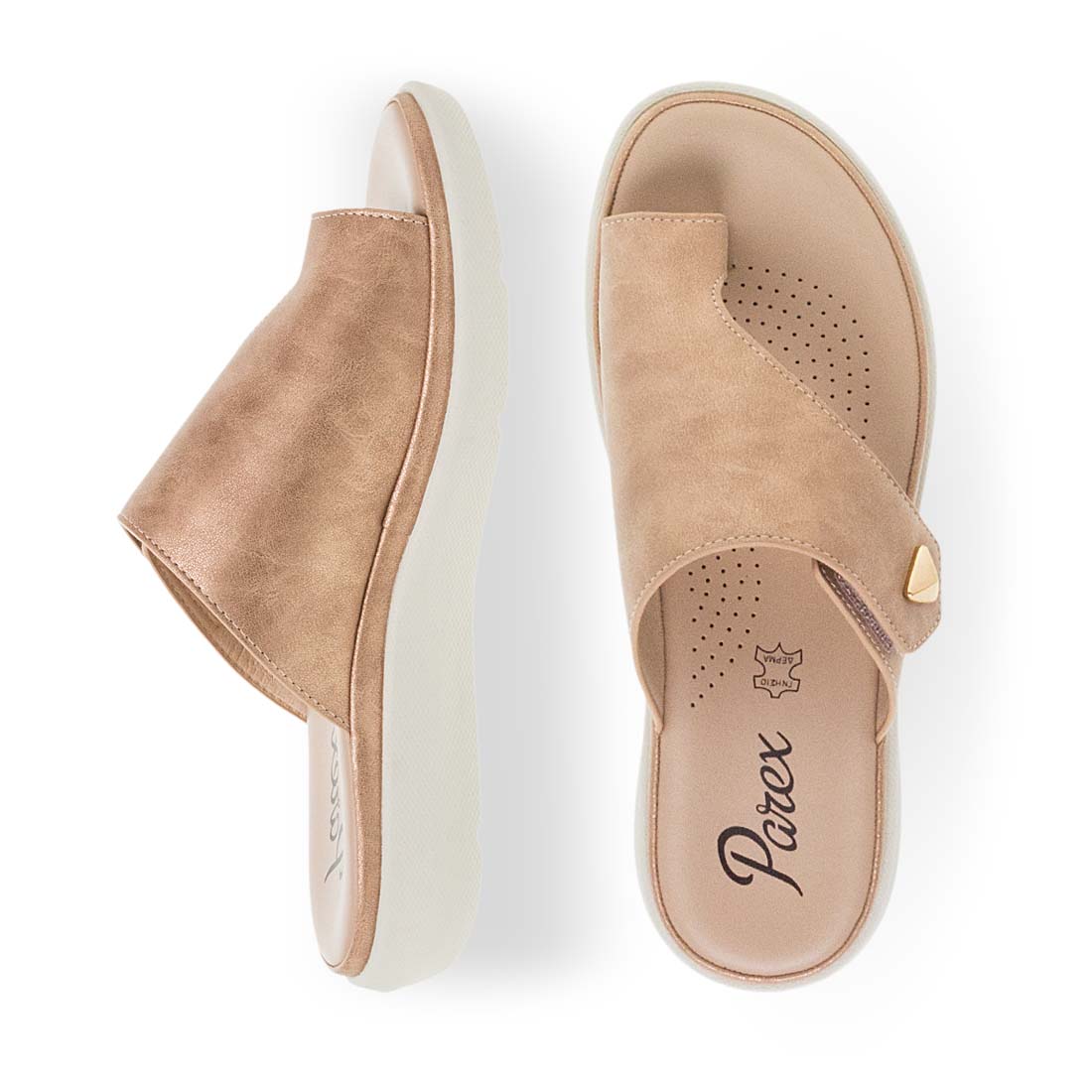 Γυναικείες παντόφλες comfort Parex. Γυναικείες παντόφλες comfort Parex με φαρδύ επάνω μέρος και διακριτική διακοσμητική λεπτομέρεια στο πλάι που προσθέτει μοντέρνο χαρακτήρα. Το ανατομικό πέλμα με μικρές διατρήσεις προσφέρει άνεση στο περπάτημα, ενώ η ελαφριά σόλα δημιουργεί πρακτικό και καθημερινό casual στυλ. Τεχνολογία "UltraLight" με ελαφρύ σχεδιασμό για άνεση, επιστροφή ενέργειας και ελευθερία κίνησης, προσφέροντας ένα αβίαστο, φυσικό βάδισμα.
